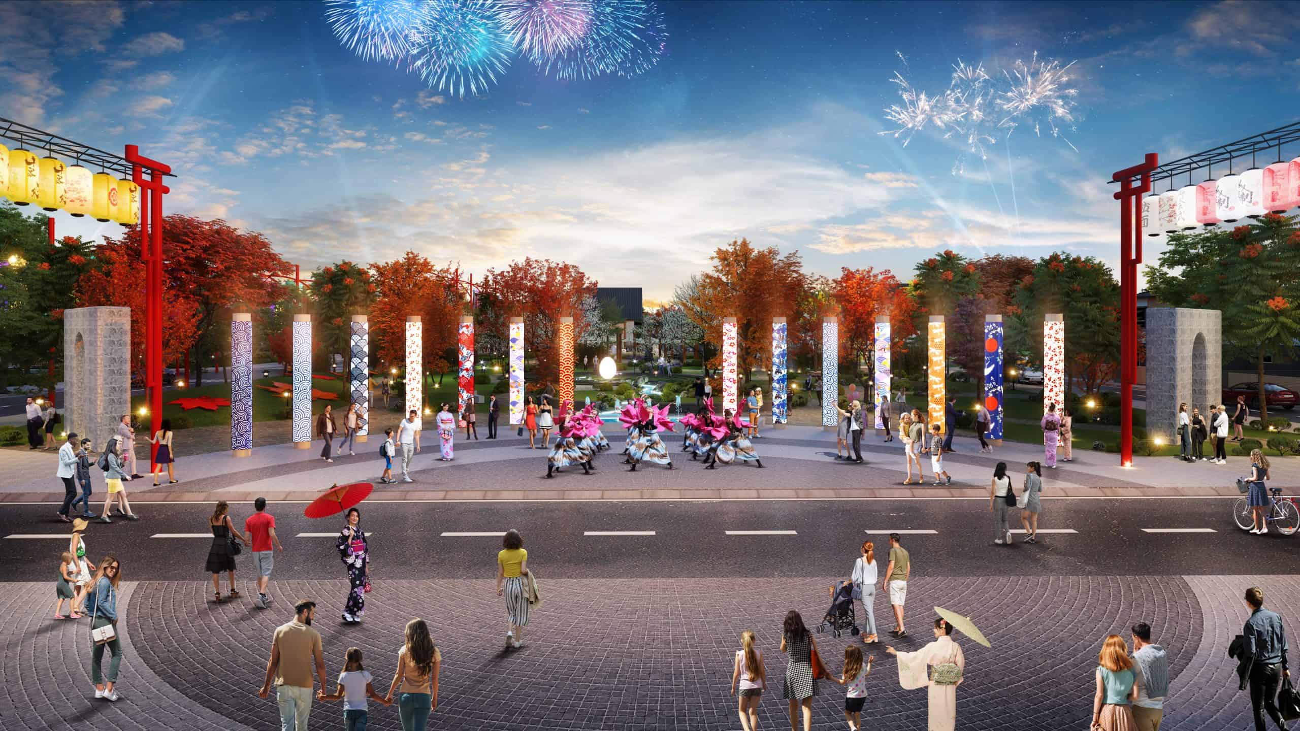 Những không gian văn hóa kết hợp nét truyền thống của 2 dân tộc Nhật – Việt được bố cục độc đáo trong Không gia Vui chơi giải trí.